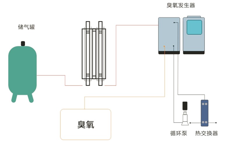 液氧源臭氧系統(tǒng)主要包括:液氧儲罐、氣化器和調(diào)壓裝置;臭氧發(fā)生器主機(jī)、配電和自控系統(tǒng);控制閥門和檢測儀表;臭氧投加和尾氣破壞系統(tǒng)組成。