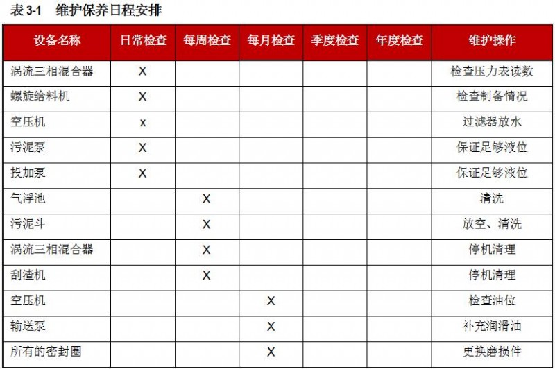 表3-3 日常檢查用表 – 設(shè)備運(yùn)行情況